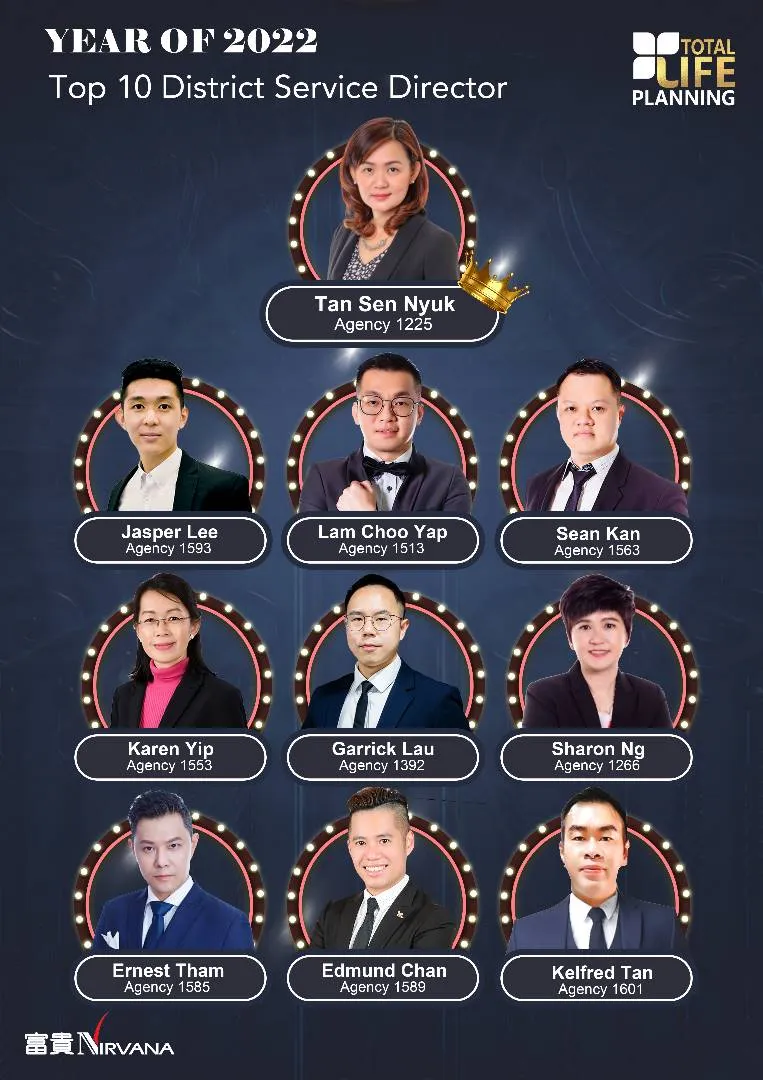 Currently, we are known as the fastest growing agency with more than 100 Million new business created yearly ! Total Life Planning has been the First Runner-up BDD Agency In Nirvana Asia for the year of 2019 & 2020. In 2021, Total Life Planning has successfully to stand out among all and be the Champion BDD Agency for Nirvana Central Region, Nirvana Malaysia as well as for the whole group in Nirvana Asia Pacific.